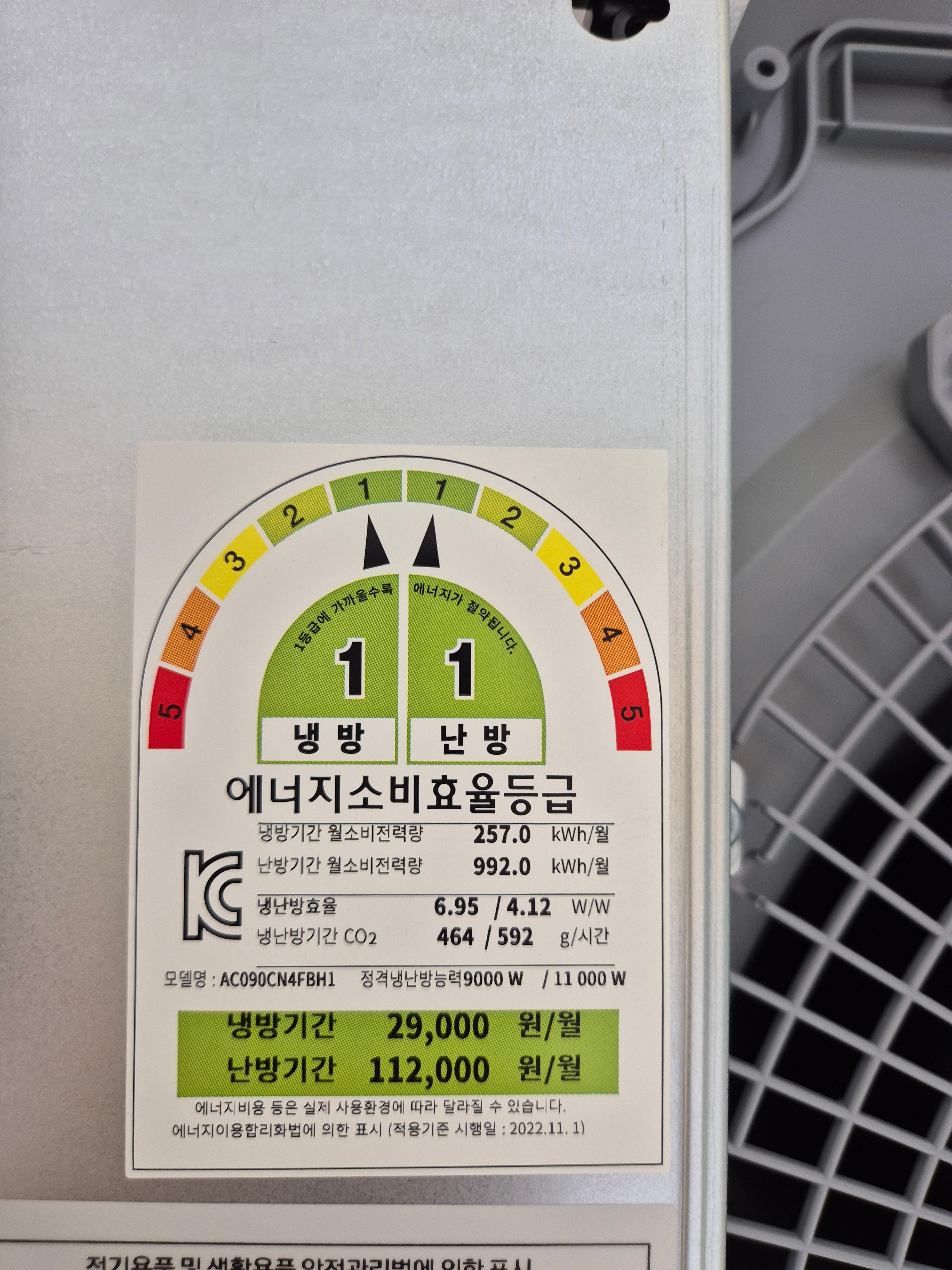 냉난방기는 1년 중 자주 틀기 때문에 1등급이 나중에 마음이 편하다.